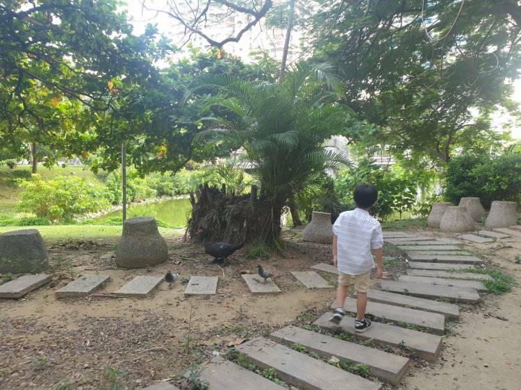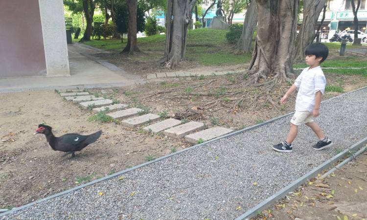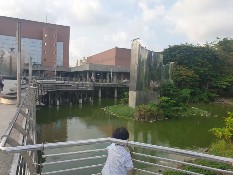 游泳完,應該是消耗太多的卡路里,二隻不斷的喊餓,簡單梳洗換裝後,走出飯店外覓食去囉。飯店地理位置相當好,除了一旁有德安百貨,周邊還有許多餐廳小吃,能吃能逛。一旁就是台南文化中心,小朋友邊散步邊看看魚、鴨可愛的動物。附近再步行6分鐘還能到達巴克禮公園。