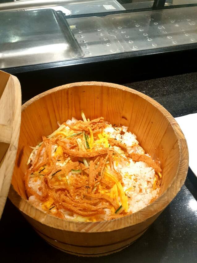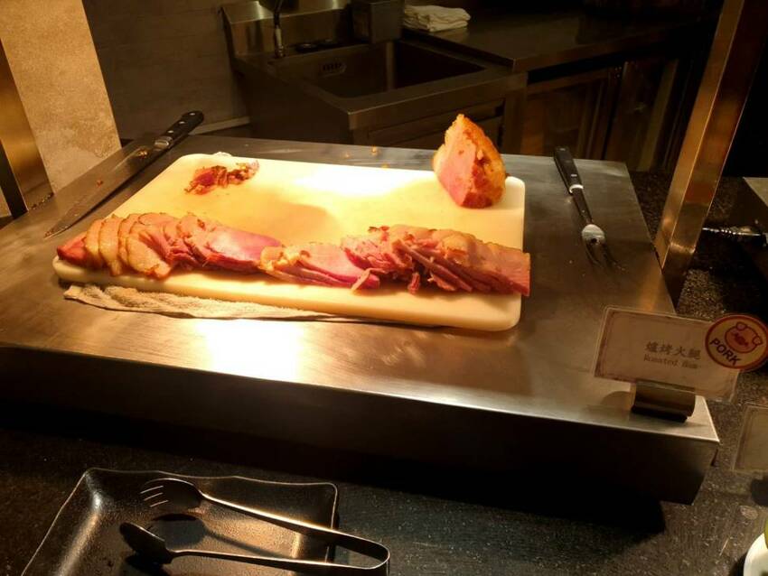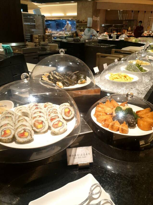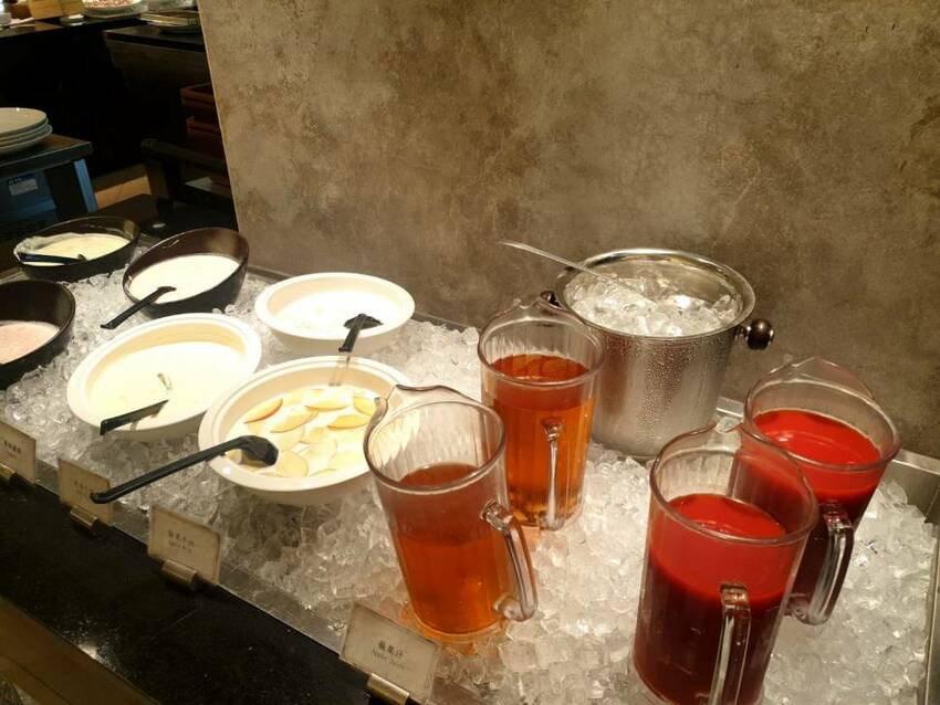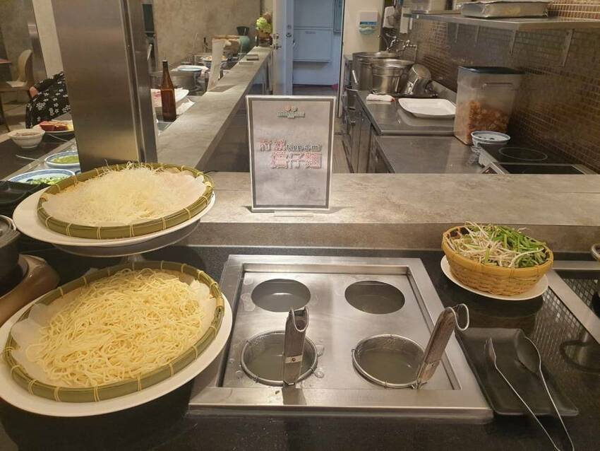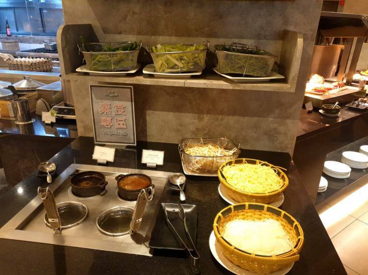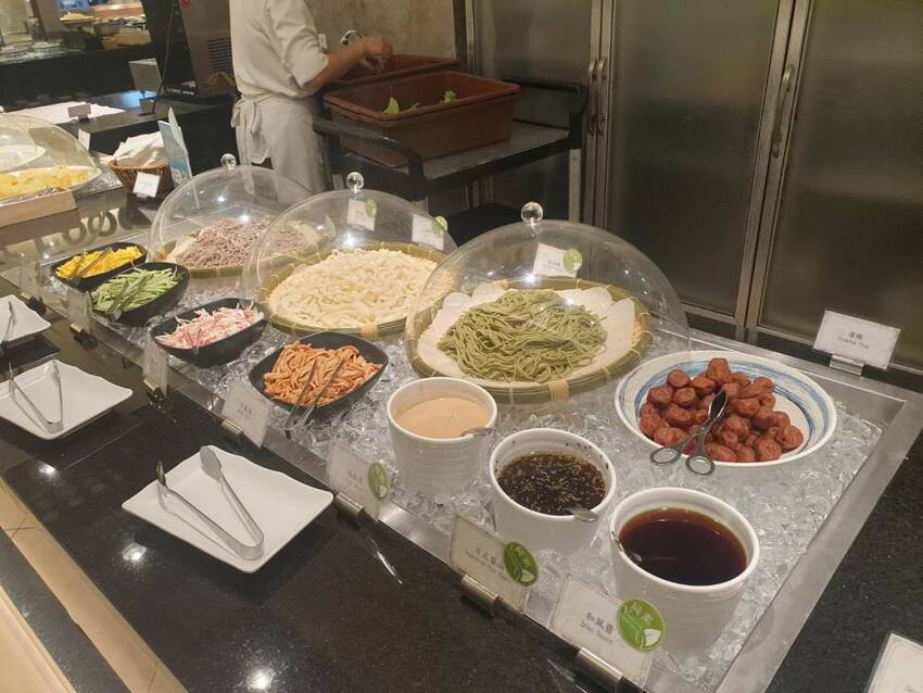 一走進餐廳,果然如我先前聽說的,確實豐富。基本的熱食區、沙拉區、水果區、飲料區還有素食區,還有台南具有代表性的小吃擔仔麵、牛肉湯。素食區的切仔麵,連葷食的我看了也食指大動。