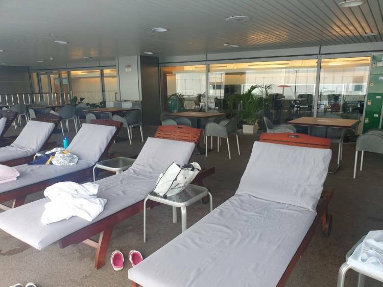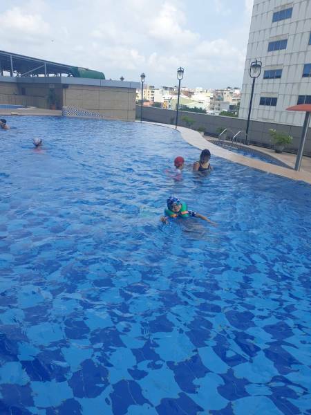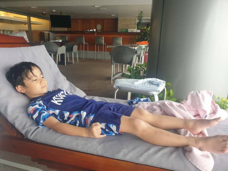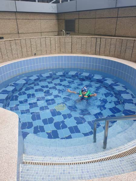 游泳池共有三區,皆無使用年齡的限制,最深泳池為120cm,泳池都有spa噴泉功能,按摩肩頸充分放鬆。當日的天氣非常好,晴空萬里,戶外泳池玩起來就是有一種心曠神怡的感覺,讓人感到非常有度假感。如果不想下水,一旁有設置躺椅,由於經常遇到前一位使用者是溼答答的,建議使用前先向服務人員索取浴巾,鋪上去再躺比較不會弄濕身體。準備零食及咖啡,坐著放空,看看泳池內玩樂的孩子,是不是很享受呢?