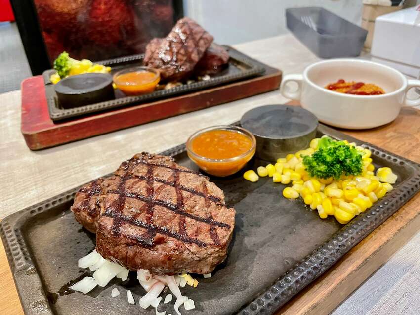 如果覺得送上來的熟度太生或是吃到最後冷掉不好吃,不用擔心,一旁有附一塊加熱過的鑄鐵石,讓你隨時可以掌握自己想要的熟度及熱度。這種方式真的方便又趣味,加熱的同時,牛肉的焦香味更是撲鼻而來,而且吃進嘴裡的肉汁反而更加豐沛,所以這種吃法真的非常推薦喔。