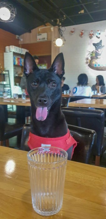 在這裡,毛孩都可以任意就坐。地板、椅子隨你坐。黑妹個性比較”內向”(兇),我們就讓他跟著一起上來坐椅子,遇到別的毛孩接近勢力範圍還給我露牙齒兇,在此真是對不起其他鏟屎官阿~