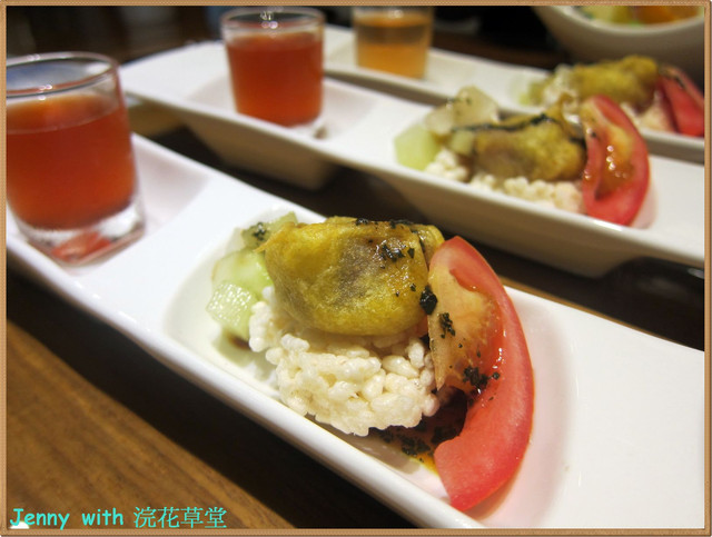 淋上醬汁很像我們在美濃吃花生豆腐的那種味道,涼口又精緻爽口!