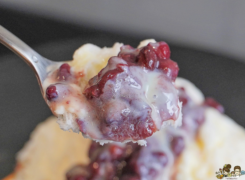 抿於嘴裡就化開的飽滿紅豆香甜,淋上邪惡煉乳增加乳香甜味