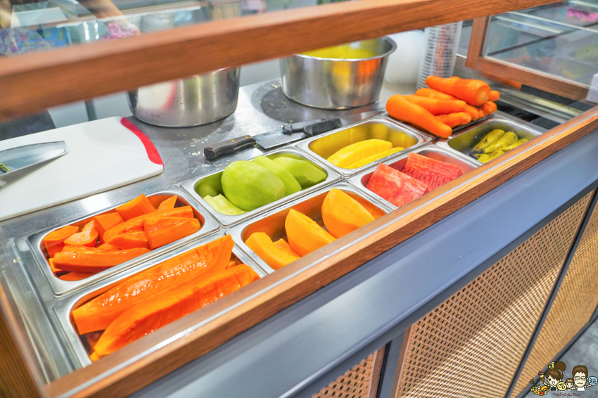 新鮮備料的水果蔬果也都能看到,透明化的製作過程、讓消費者也能吃得安心