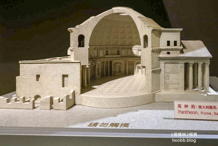等比例的模型,希臘建築著名的巴特農神殿或是義大利羅馬的萬神殿,無論是著名的科林斯柱、穹頂都做得相當細緻。