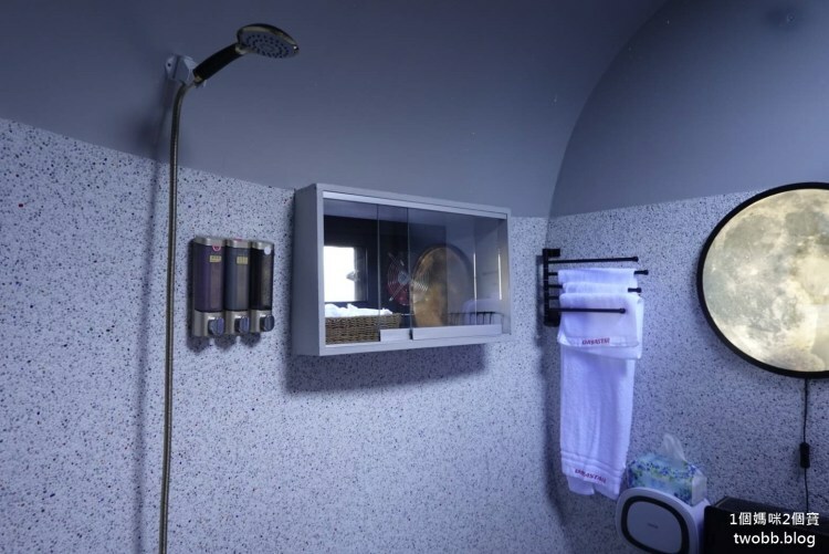 按下開關就會切換成月球的樣子,太令人驚喜了。小小的浴室應有盡有!