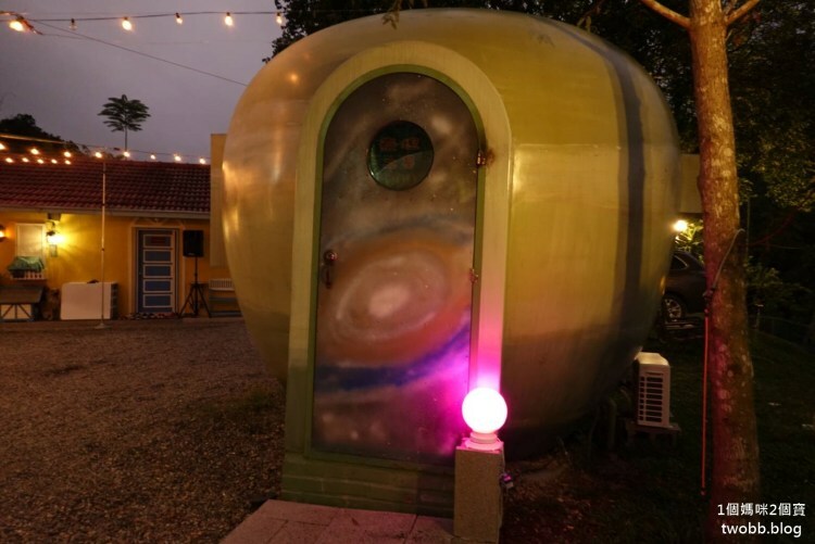民宿相當的隱密,可形容為一座秘境。穿過高大的山林後,終於到達目的地。入場就被五顆星球屋吸睛了,小朋友們興奮的直衝過去。五顆星球各以金、木、水、火、土行星作為彩繪設計,其中各代表不同意義!這次我們選擇是金星,原來金星代表的是維納斯,是愛神的意思,可見得業者的創意及浪漫!