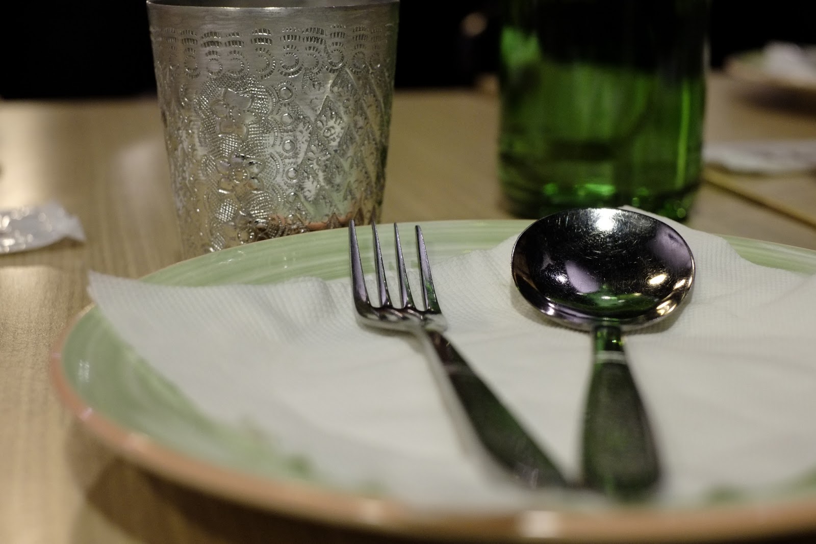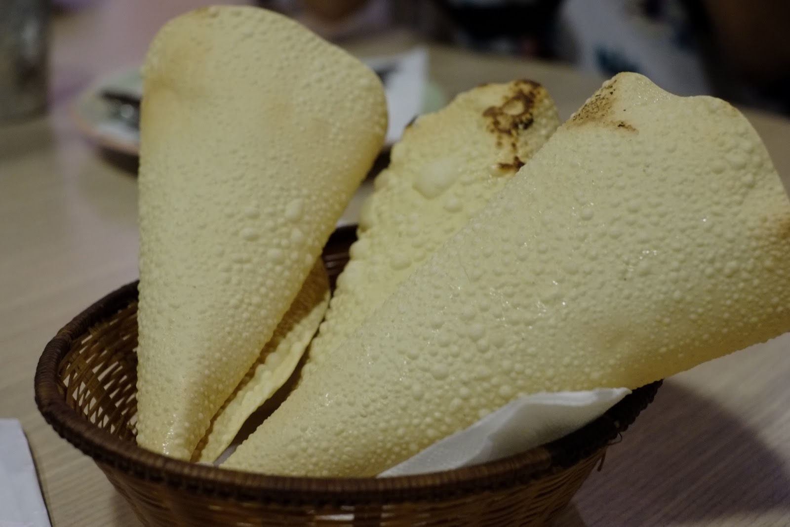 等大家都點完餐就開始上菜,點菜都是直接跟廚師說!第一道是鹽味餅,端上來就能看到隔壁桌全部都站起來圍著食物消毒一番(大誤),這種景象我是第二次看到,還是覺得很壯觀!相對之下我們這桌感覺冷靜多了(?)