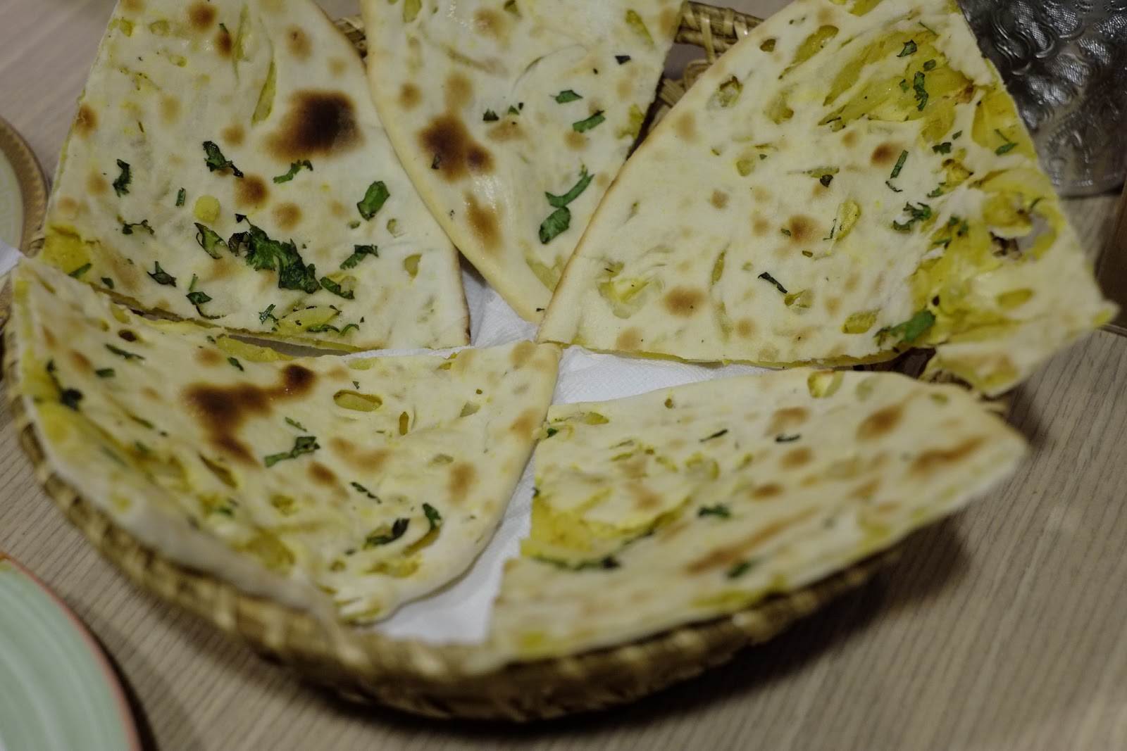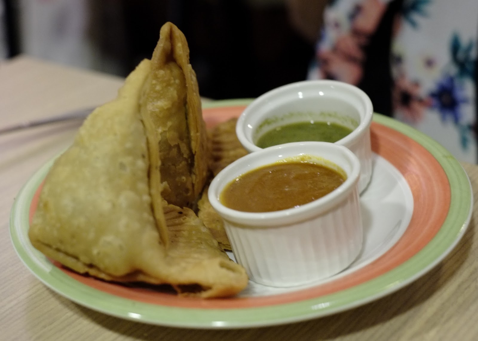 香酥的外皮加上熱呼呼的內餡有兩種沾醬,一種蕃茄咖哩(立馬跳過),一種是綠咖哩(就像喝小麥草汁一樣,單吃會以為自己是少草食性動物),我覺得吃原味比較優,其他人是比較喜歡沾蕃茄吃。