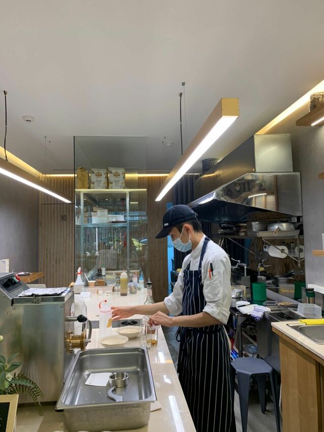 工作臺上可以看到製麵機,藍帶主廚會在現場製作麵條喔~~而且麵條會有不同形狀!每一款都非常獨特好吃!
