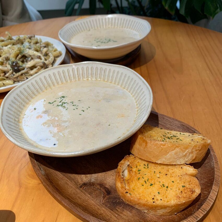 濃湯加上香蒜麵包,味濃多汁,非常涮嘴!!會想一直喝一直吃哈哈哈~