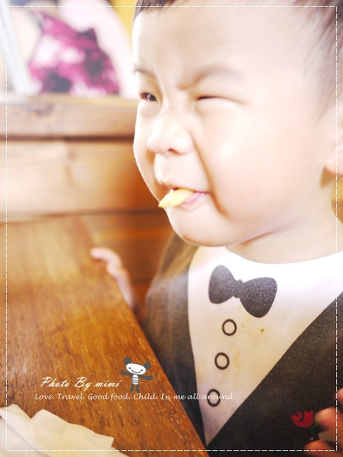 邊吃薯條邊配雪梨茶 才能讓他乖乖坐著