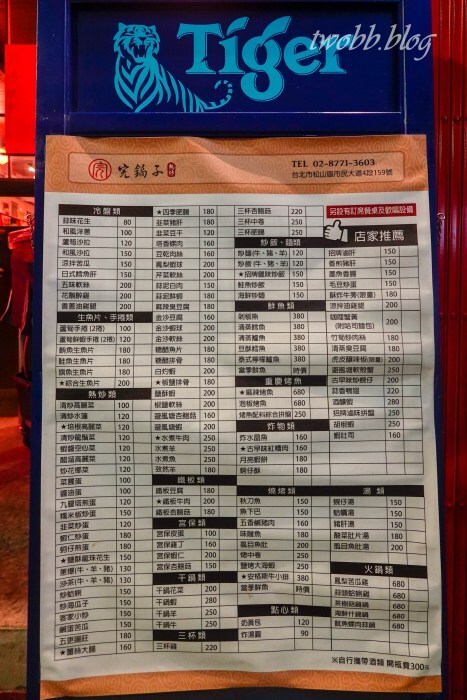 斗大的菜單就擺放於餐廳門口,等待入座前還可以與三五好友超前佈署,討論待會的菜色選擇。很難想像在寸土寸金的台北市,尤其是市民大道消夜林立的一級戰區中,還能夠有一間價格實惠的東區平價熱炒出現。