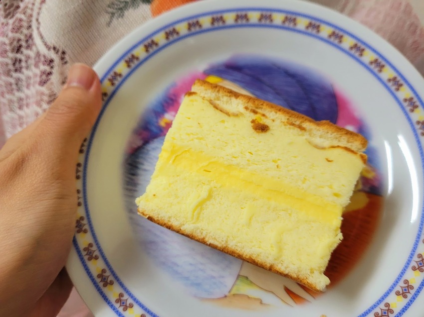 放入嘴裡的時候,先是感覺到蛋糕的綿密,再來是濃醇牛奶香,最後才會是濃郁的乳酪香。