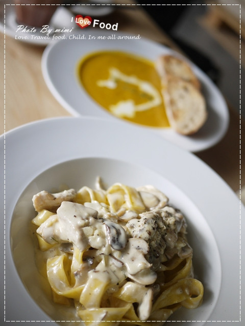 應該是奶油野菇雞肉義大利麵