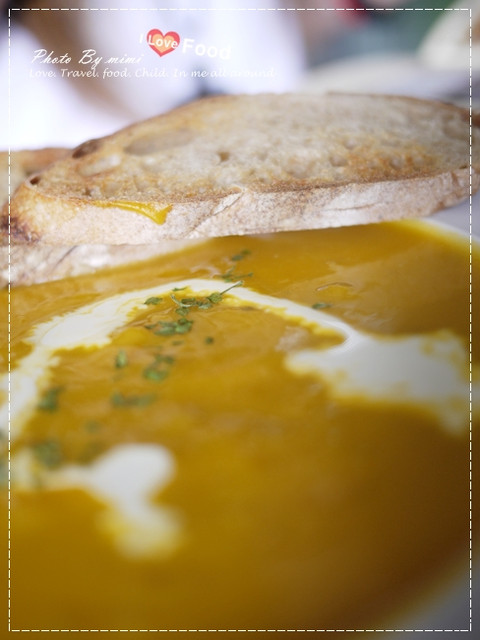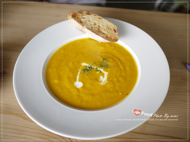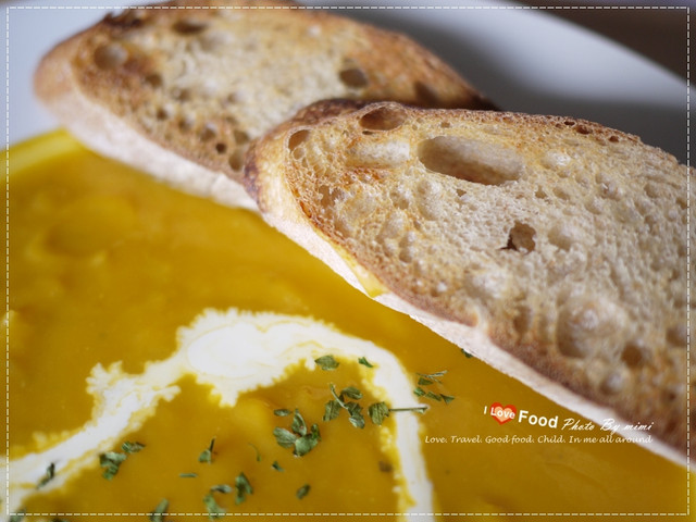 我們點了南瓜湯 上面會附一片麵包