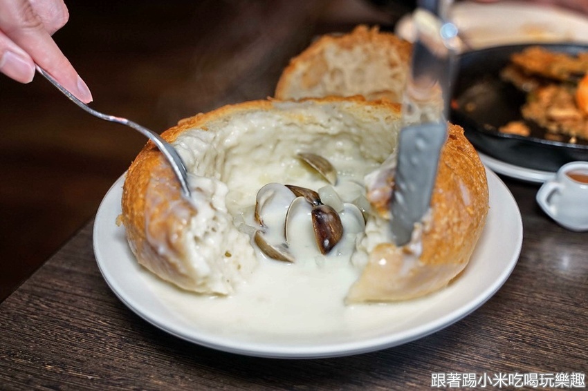 如果人多的話,可以點很招牌的舊金山經典蛤蜊濃湯(180元),超大的法式麵包,且烤得脆脆的喔