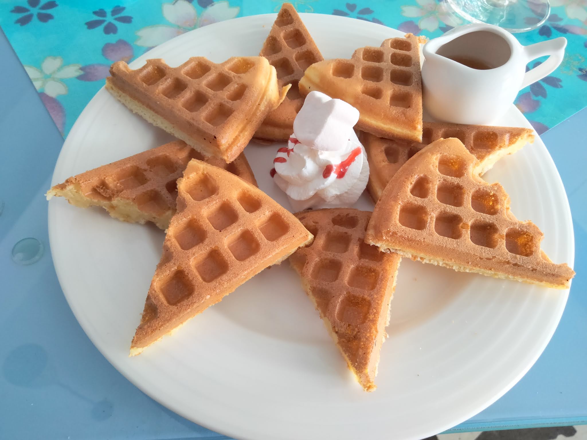 我們三人點了兩杯咖啡、一杯果汁、一份鬆餅,優閒的在