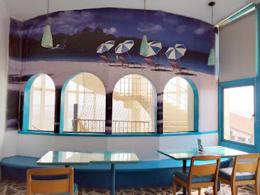 藍白地中海風格的對比色系,海岸咖啡廳用顏色來區分場景,