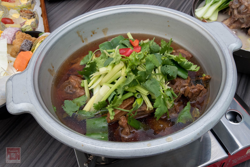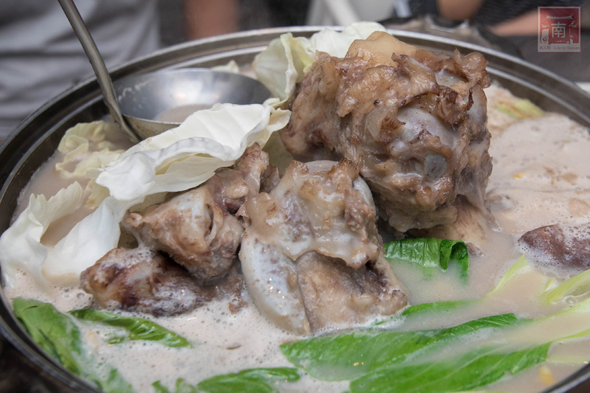 這一鍋也是店內的經典招牌菜,使用新鮮豬大骨、山藥及黃豆,經過幾小時細火慢燉,不添加人工調味料,湯頭看起來呈現乳白色,完全已經把大骨的精華都熬出來了。大骨超大隻的,熬煮過後再用吸管吸一下骨頭的精華,湯頭味道濃郁但不油膩。添加的高麗菜也很厲害,使用梨山尖頭高麗菜,口感更脆更甜。當然最好吃的就是骨頭邊的肉,在這裡可以不顧形象的拿起來啃。