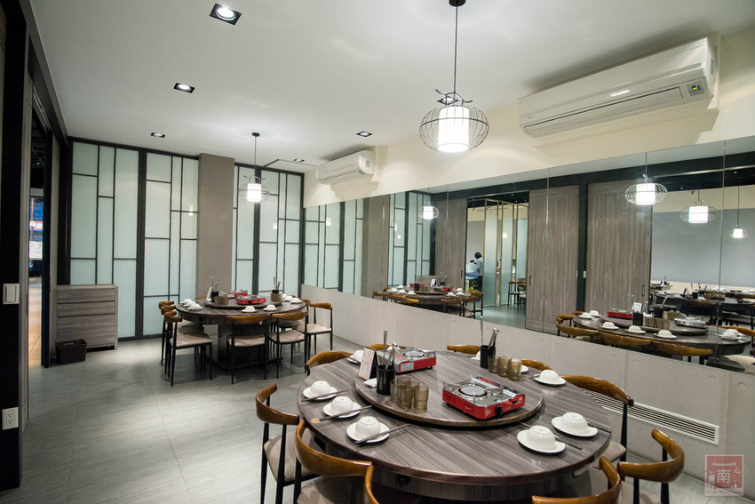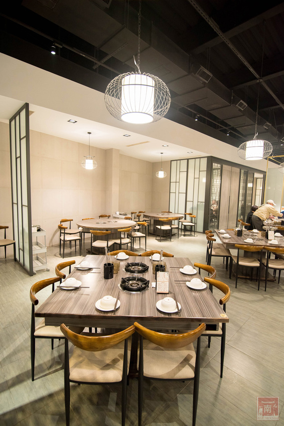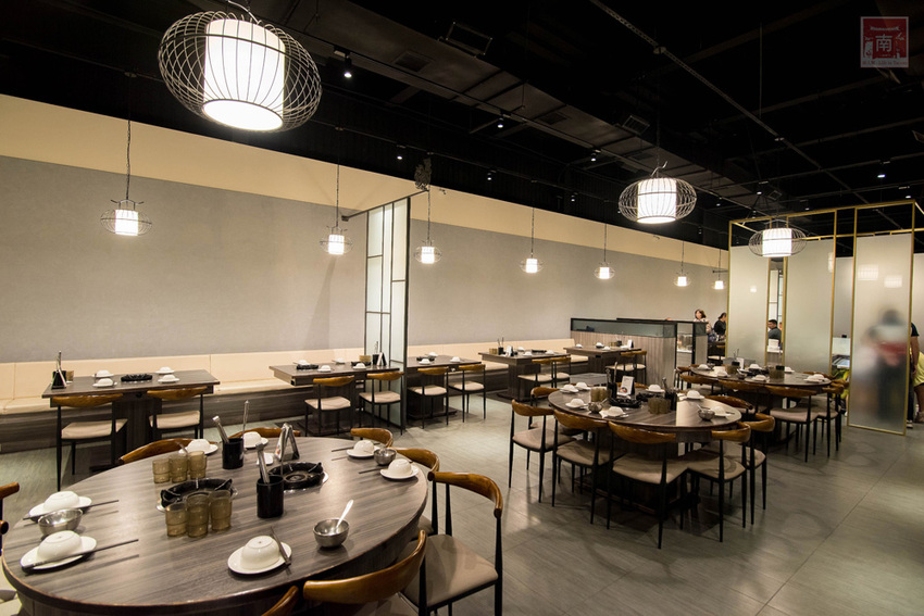 北安店的空間滿寬敞的,桌子的安排算是滿多元的,有四人、八人和大圓桌,適合小家庭也適合朋友或家庭聚餐。有吊燈和投射燈光,搭配簡約的裝潢設計,簡簡單單、乾乾淨淨的,也有幾間包廂供客人使用。