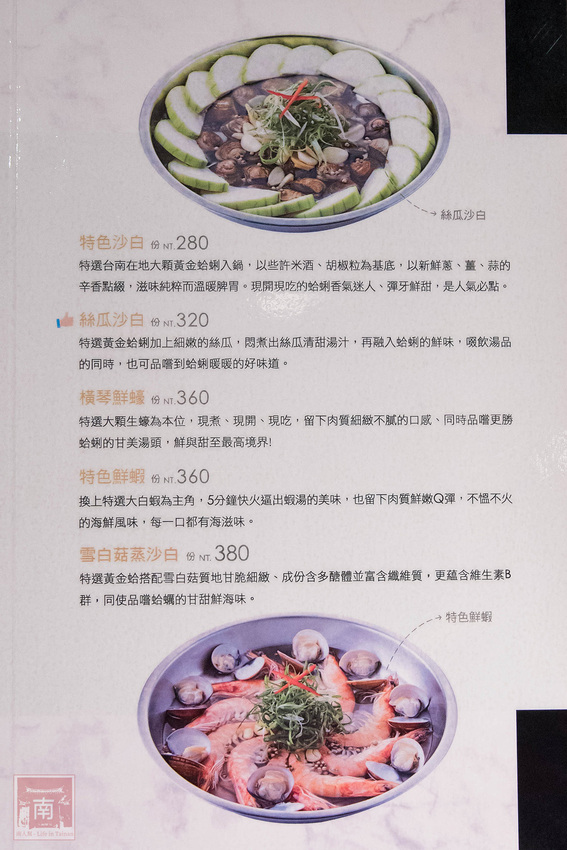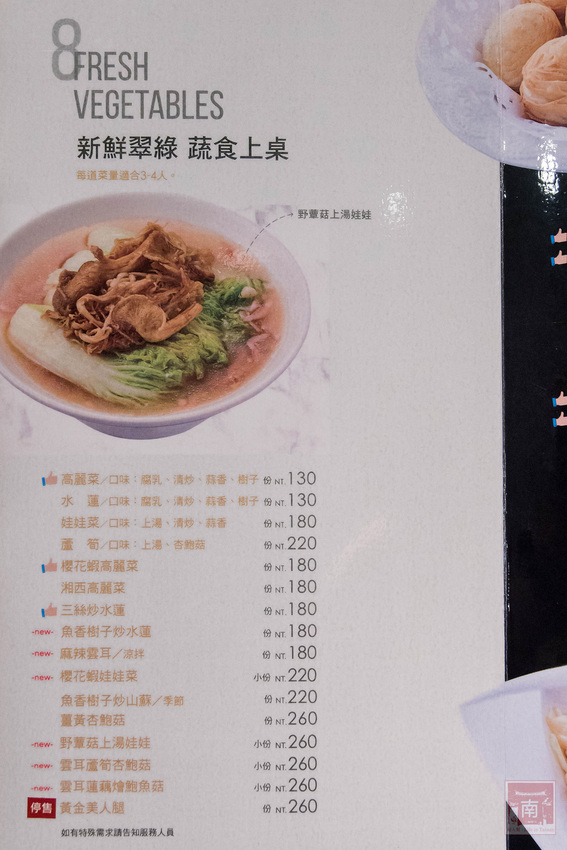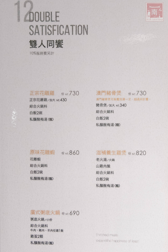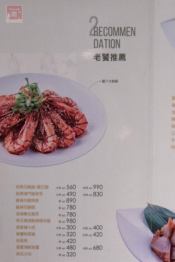 最後送上菜單,有桌菜、套餐、個人餐點及單點。