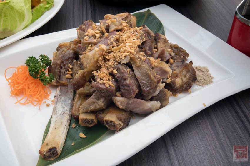 豬肋排用油亮油亮的油光跟我打招呼,吃進嘴裡肋排帶點油脂。因為豬肋排有先用特製醬汁滷過再炸過,所以越咬越香,最上頭則是炸過的蒜片,會讓人一口接著一口。