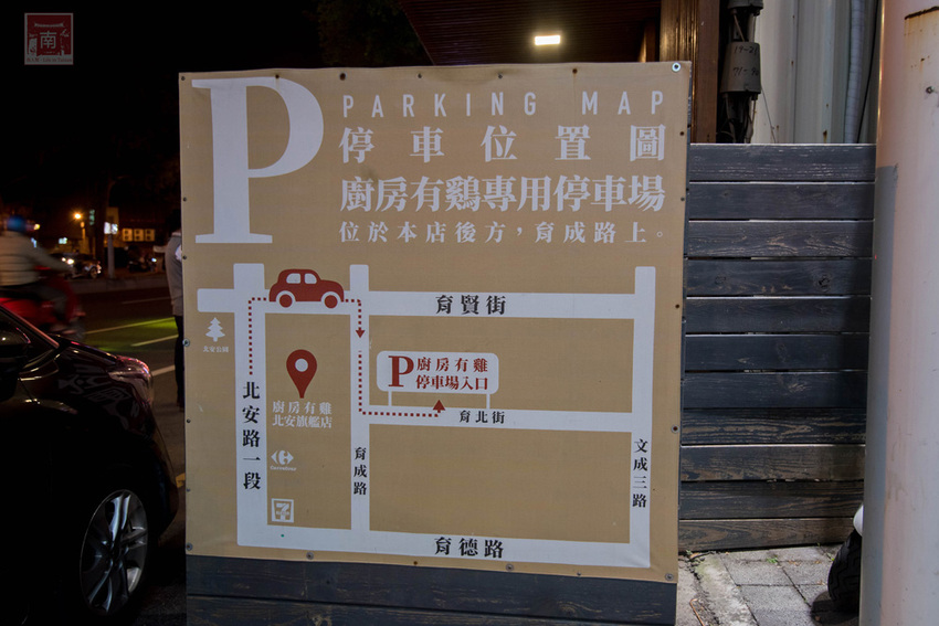 來『廚房有雞花雕雞-北安旗艦店』吃飯有免費停車場,就在北安旗艦店正後方。