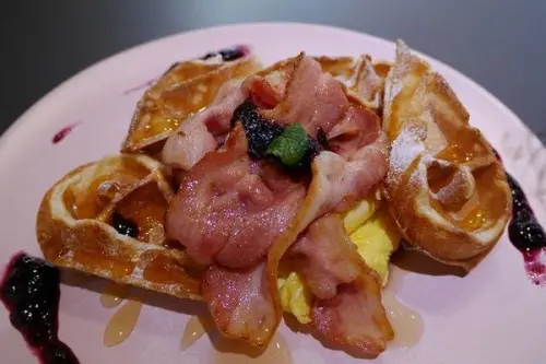 ▲有室內和走廊用餐空間,在走廊悠閒吃著早餐,看著人來人往的車子和行人也是一種很日常的風景。左邊的桌子為醬料區可自行取用。