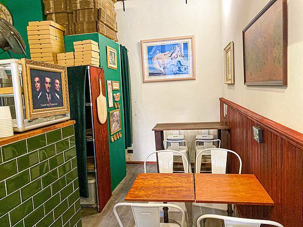裝潢走歐式帶著古典風~裝飾品都好特別,店內的披薩是屬於拿破崙披薩,使用進口義大利麵粉 、食材及天然酵母,薄片式的餅皮卻Q彈帶著麵香~❤️採現點現烤,烤箱一直飄出香味真的口水會流出來🤤