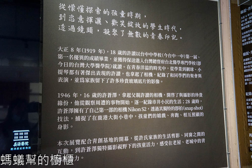 許蒼澤的父親許讀,是日治時期台中中學校(現今台中一中)第一屆畢業生,許讀習醫後便回鹿港開設長源醫院,還在家中自設暗房沖洗相片,許蒼澤從小受父親影響,16歲開始接觸攝影,醫生蒐藏近800台相機,留下約25萬張作品,大多紀錄市井小民的生活。
