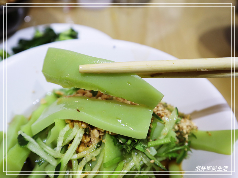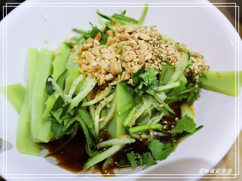 涼拌清爽的豌豆粉,上頭灑了花生碎粒及香菜——大家都知道我是不吃香菜的人XD,幸好這個香菜份量不算太多,不然真的要流淚了😂😂。