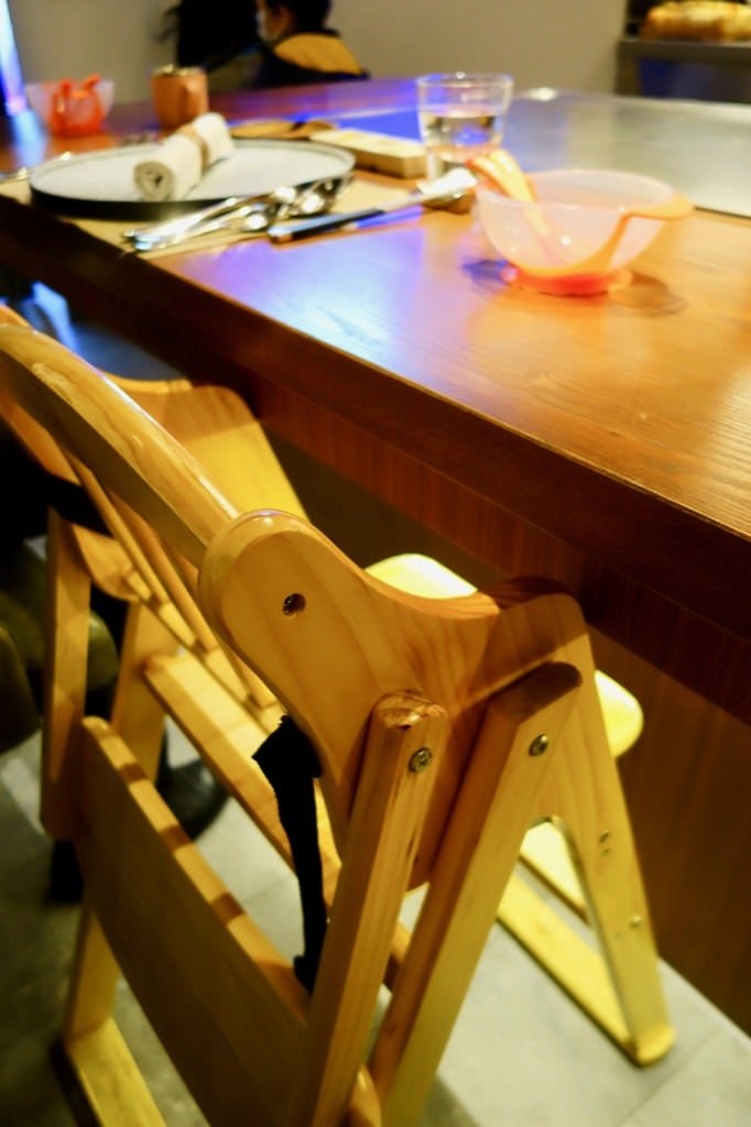 ▼一進門看到一張長桌與櫃檯,等服務人員帶位進去,整間店大約十來個位置,拍照一覽無遺。裝潢則是讓人很放鬆、很舒服的風格,鐵板外的桌子是原木桌,特別的燈光設計也很適合拍照,食物拍起來很好看!
