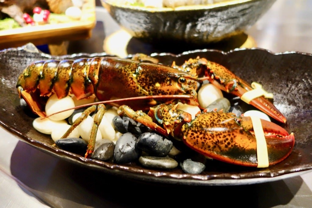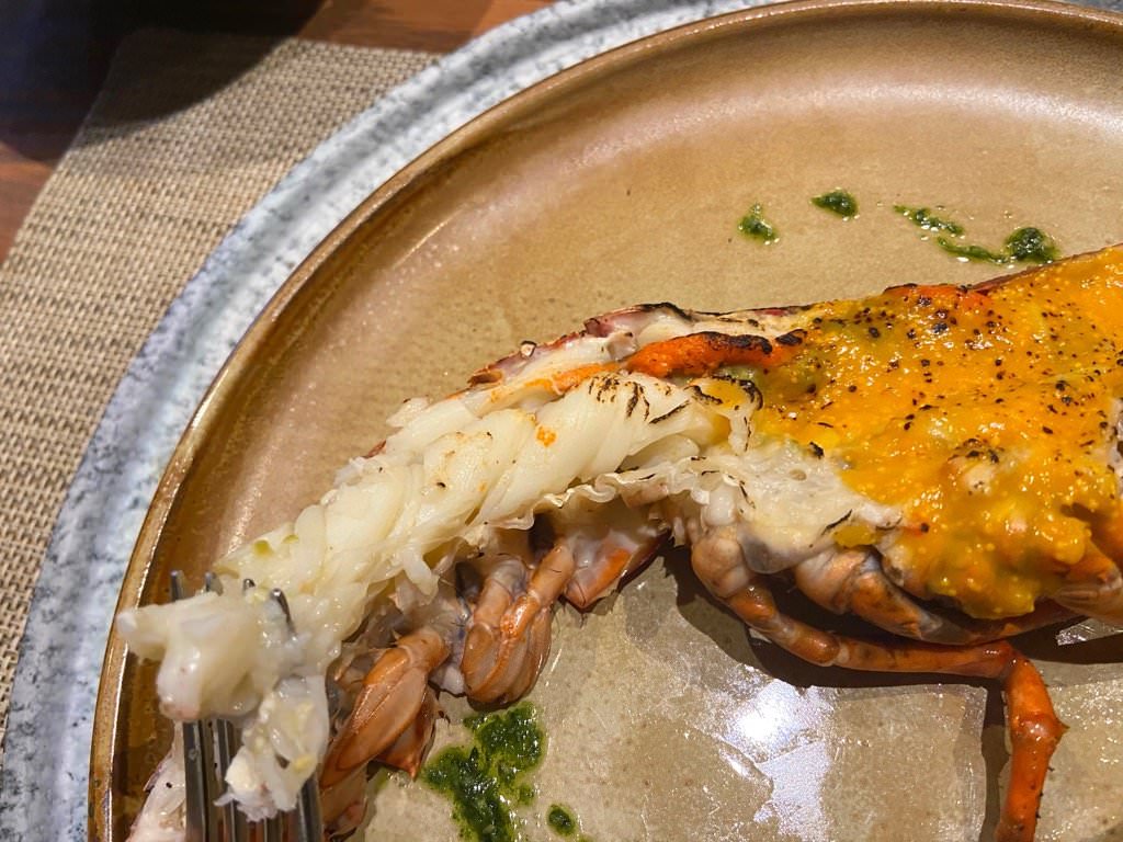▼ 主餐先上加點的新鮮龍蝦,有原味跟海膽魚卵醬,敖特別處理過可直接取出享用。原味的就可以吃得出肉質新鮮彈Q的口感,愛吃龍蝦的人推薦加點!