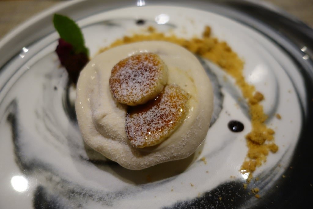 ▼ 現場看大廚淋上奶霜醬與炙燒焦糖香蕉,看了滿眼愛心與期待 (影片連結)