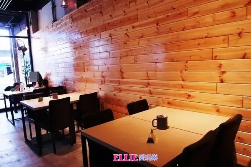 埔里店內有兩面落地玻璃 一側牆面則是用微彩水墨畫