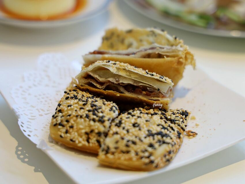 吃中菜也來個中式甜點吧!這個豆沙鍋餅的千層酥脆感非常討喜,豆沙餡甜而不膩,加上滿滿的芝麻香氣,令人口齒留香。