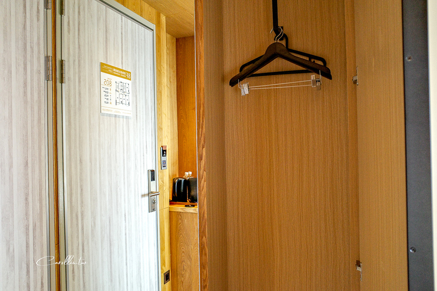 原本以為房間裡沒衣櫃,後來才發現是設計師太厲害,衣櫃居然是隱藏式的,就在門邊的某一片木頭後方,因為太隱密所以退房時我完全忘了自己的外套,提醒大家不要像我一樣健忘哦!(雖然基本上也沒人跟我一樣這麼會掉東西)