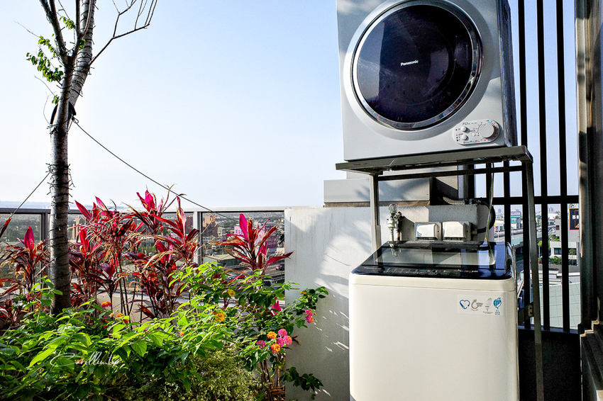 洗衣機跟烘衣機都在7樓的戶外,如果有需要使用,等待的時間坐在室內休息就行了,這樣的空間規劃蠻貼心的。