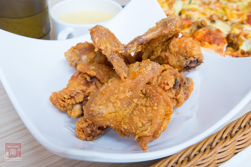 現炸的炸雞還會冒煙,外皮香酥脆,裏頭的雞肉很嫩多汁,個人覺得是好吃的,是店內的招牌商品之一。