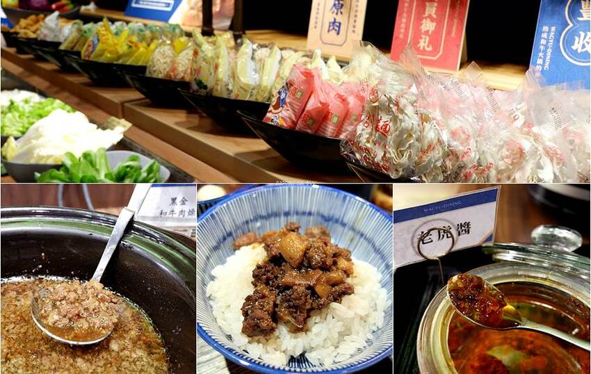 上層麵類有寬粉、王子麵、粉絲、刀削麵、鍋燒意麵、蒸煮麵,完全可以滿足愛吃麵食類的族群。黑金和牛肉燥飯(含豬肉)也別錯過,加點老虎醬更下飯好吃。