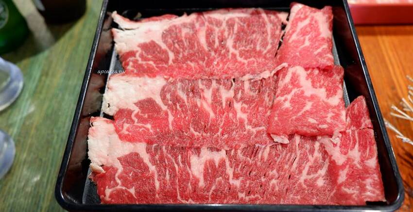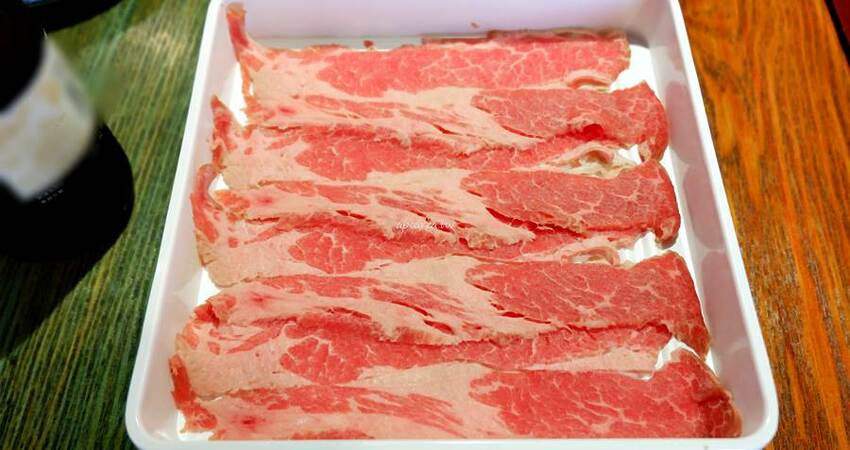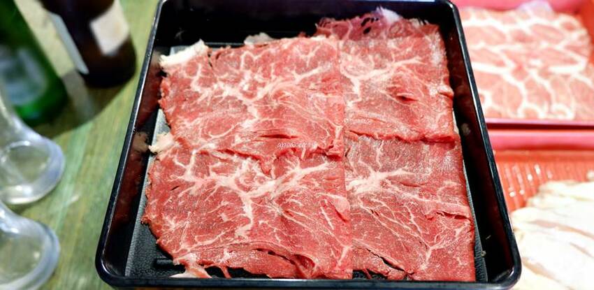 霜降部位的肉品油花及瘦肉較平均,肉質多汁軟嫩鮮香,大片好涮,我們第一份吃掉的就是它:9
