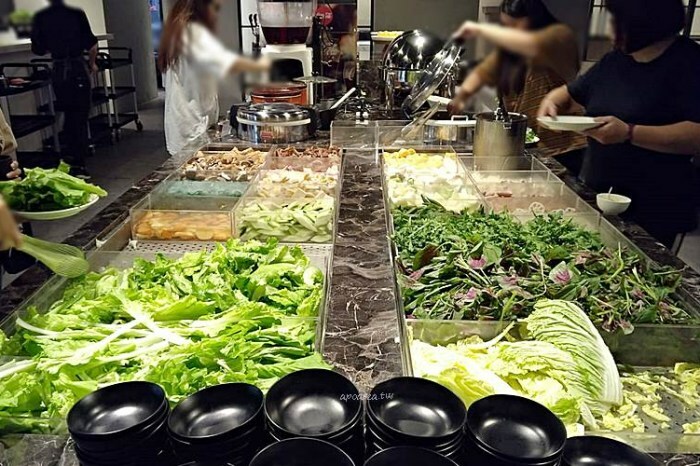 自助鮮蔬吧有超過四十種以上的新鮮時蔬及鍋料麵食,種類多,愛吃的就多拿一點,不喜歡的也能跳過不浪費,這也是來吃到飽自己取菜的好處之一♡
