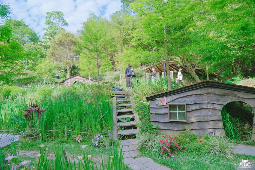 這邊就是熱門打卡照的拍照區~牛角村花園,右下哈比屋的造型很可愛,好像會跑出森林中的小精靈一樣,很有童話情境感。
