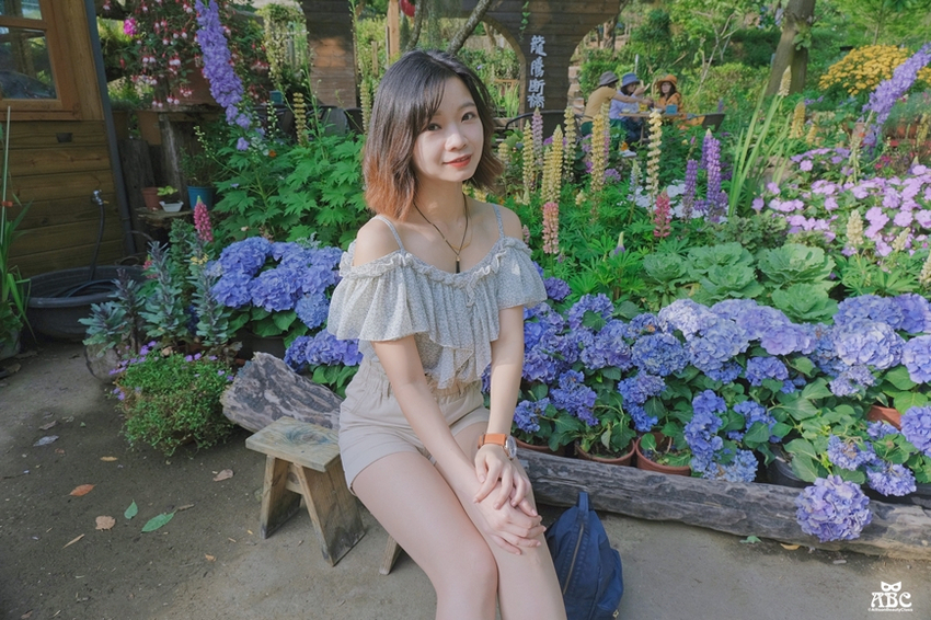 書園子門口就有一片繡球花可以拍,還貼心放了拍照用的椅子,這邊比較適合拍照的時間應該是傍晚,中午太陽太大的話會睜不開眼。後面有看到龍騰斷橋嗎?是不是想說咦?龍騰斷橋怎麼會在這邊?原來是卓也設計的迷你小景點,除了龍騰斷橋還有勝興車站,縮小模擬放到了這個牛角村花園裡。但是我這次也沒有去拍,哈哈,行程太趕了。
