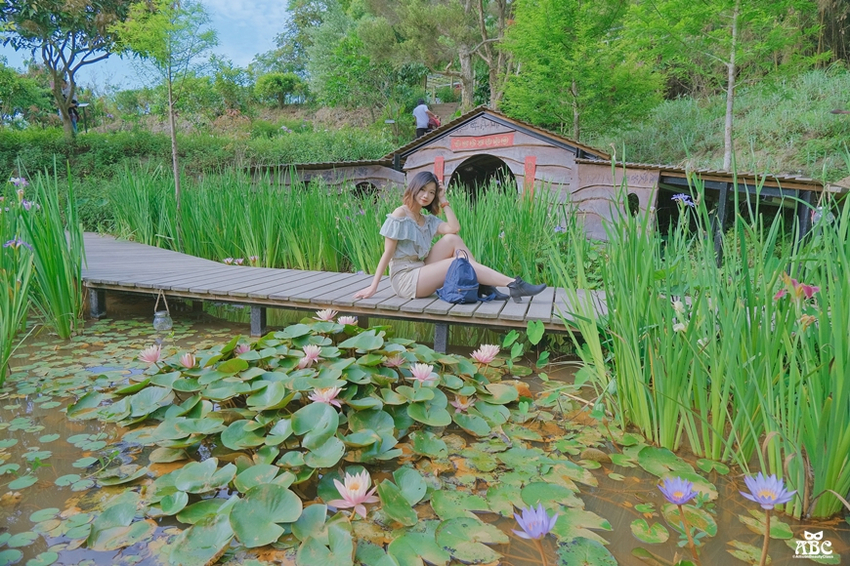 最多人拍的就是下圖這個打卡位,剛好可以拍到哈比屋跟蓮花池,很浪漫意境的造景。