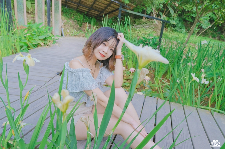 幸運地遇上鳶尾花盛開的季節,紫色、白色點綴著這片綠意,是不是很像一幅畫一樣的美。
