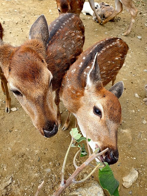 ▼大家可以趁餵食的時候摸摸梅花鹿,但記得要輕輕摸不要太大力囉~~而且也可以趁餵食的時候多拍一點照,梅花鹿比較不會烙跑(笑)!