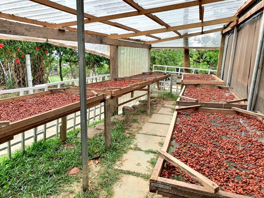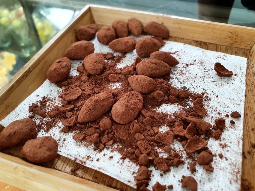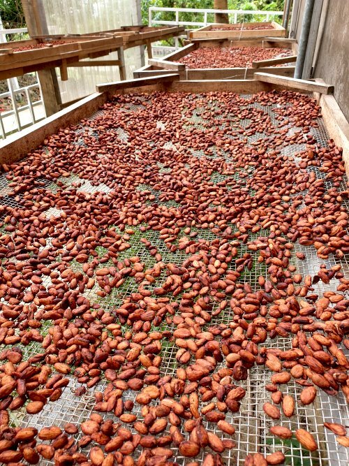 ▼外頭有曬乾的可可豆,也就是從可可果裡頭取出的果實!