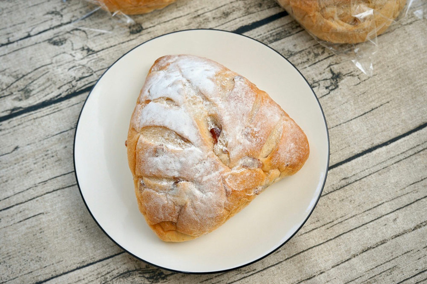 是蔓越梅與核桃當配料,一口咬下,香又細緻綿密。相較一般法國麵包硬梆梆,軟歐更加鬆軟,更符和我們的口感!